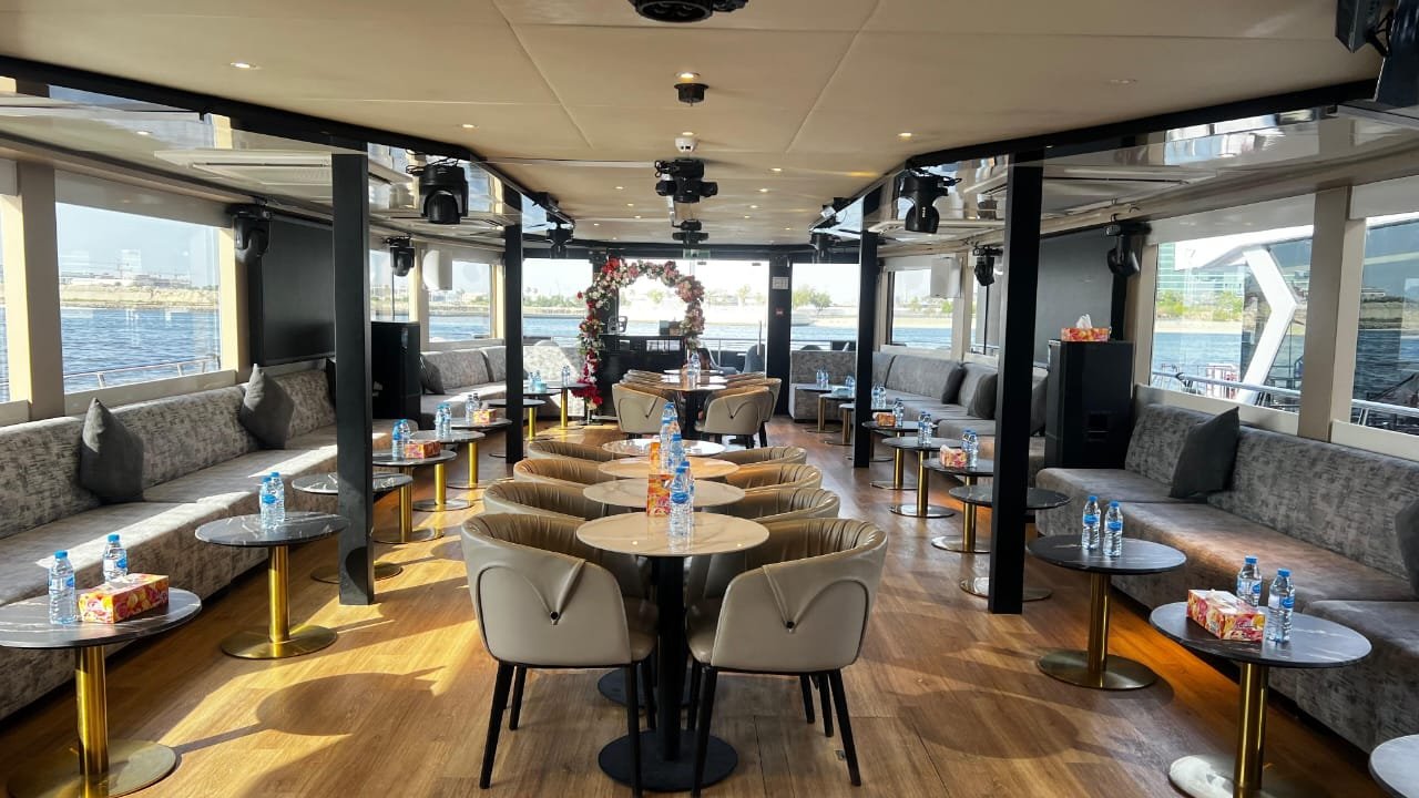 Authentic wooden dhow with traditional Arabic decor, providing an intimate and culturally immersive experience for all guests.